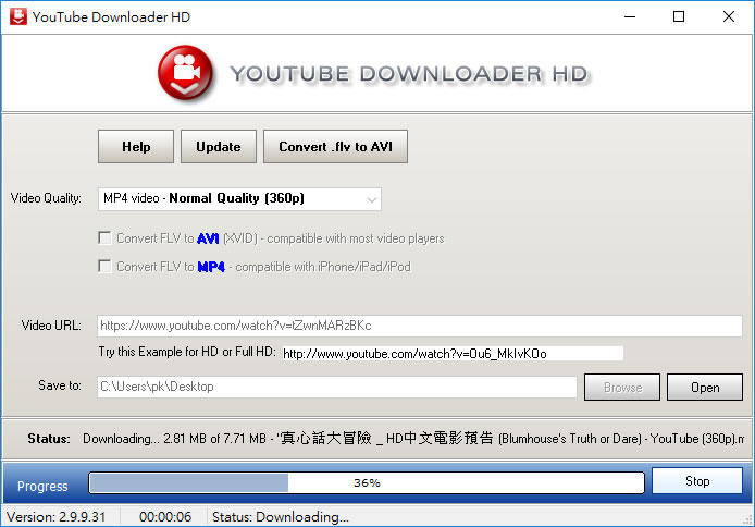 首頁電腦軟體上傳下載 Youtube Downloader HD Youtube 高畫質影片下載與轉檔 YouTube 可說是目前網路上最流行的一種影片分享方式,鬨可以將一些有趣的影片或是生活記趣放在網路上與好友們一起分享,如果創意十足,說不定還會就此一炮而紅,成為網路紅人,日進斗金,如果要下載 YouTube 的影片,其實只要有 Youtube Downloader HD 就可以輕鬆搞定,Windows、Mac 與 Linux 平台都適用。 🔔 不錯過任何精彩! 立即訂閱我們的 LINE 官方帳號 每次發佈新文章時,您將會第一時間收到本站文章連結通知,輕鬆掌握最新資訊! 使用 LINE 追蹤文章更新 §相關文章,還可以參閱:ArrowDL 全平台下載利器:輕鬆批量下載 YouTube、BT、FB與多站串流影片YouTubePlaylistDownloader 支援播放清單與頻道的 YouTube 影片下載工具,還能轉換格式Parabolic 讓 yt-dlp 更好用的免費影音下載工具,支援上千個網站的影音下載Hasleo Windows ISO Downloader 幫你從微軟網站下載原版 Windows ISO 檔XMusicDownloader 從音樂網站搜尋並下載歌曲的免費應用程式 如何使用 Youtube Downloader HD 下載 Youtube 影片? 1.完成安裝後開啟「Youtube Downloader HD 」主介面,接下來將要下載的 Youtube 影片網址複製後,貼到 Video URL 處並選擇所要下載的影片畫質。 2.接下來,在 Download 處選擇要下載的影片格式,若需要轉檔,可勾選 Convert FLV to AVI 或 MP4,最後在 Save to 處,選擇下載後要存放影片的位置,確定後,點擊[Download]按鈕,便開始下載,下載的進度會顯示在最下方處。 Youtube Downloader HD版本:4.2語言:英文性質:免費適用:Windows | Mac | Linux官方網站:https://www.youtubedownloaderhd.com/下載: Windows 7/8/10 按我下載 Windows XP/Vista 32bit按我下載 免安裝版 按我下載 直接到官網下載