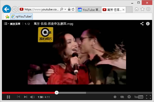 首頁線上工具網頁瀏覽 YouTube 單曲循環書籤小工具 (rpYouTube) - 瀏覽器應用 Youtube 不僅影片多樣且豐富,音樂這塊也已經是很多人聽歌的選擇之一,對於新歌、老歌,除了有官方的 MV 外,還有很多的演唱會版本供你一再回味,不過有個問題,若想要重複一首歌曲,目前似乎僅能手動無法循環。想要循環播放 YouTube 的影音網址,可以來試試「YouTube 單曲循環書籤小工具 (rpYouTube)」這個瀏覽器的插件,不僅能循環播放,還將播放視窗調整到與瀏覽器視窗大小一致,Chrome 和 Internet Explorer 均適用。 🔔 不錯過任何精彩! 立即訂閱我們的 LINE 官方帳號 每次發佈新文章時,您將會第一時間收到本站文章連結通知,輕鬆掌握最新資訊! 使用 LINE 追蹤文章更新 §相關文章,還可以參閱:Chrome 推出 Auto Browse:讓 AI 自動訂機票、找房子、填表單,還能即時改圖Google 搜尋『67』會發生什麼事?網友實測驚呼:螢幕活了!Google 2025 台灣年度搜尋榜:地震、普發現金、Gemini,我們都在找什麼?ChatGPT Atlas 瀏覽器問世:三大 AI 功能顛覆你的上網方式Microsoft Rewards 點數全自動狂賺法,一鍵設定、天天進帳! 如何使用 YouTube 單曲循環書籤小工具 (rpYouTube)? 1.使用瀏覽器進入上述網址,利用滑鼠將 rpYouTube 插件拖拉到瀏覽器的書籤列(IE 為我的最愛列)後放開。 2.接下來進入 Youtube 播放網址後,按下剛剛所新增的插件。 3.接下來播放畫面就會隨目前瀏覽器視窗大小展開,並出現播放清單,不斷的重複循環播放。 rpYouTube 插件網站網址:http://www.syneart.com/2014/02/rpyoutube.html