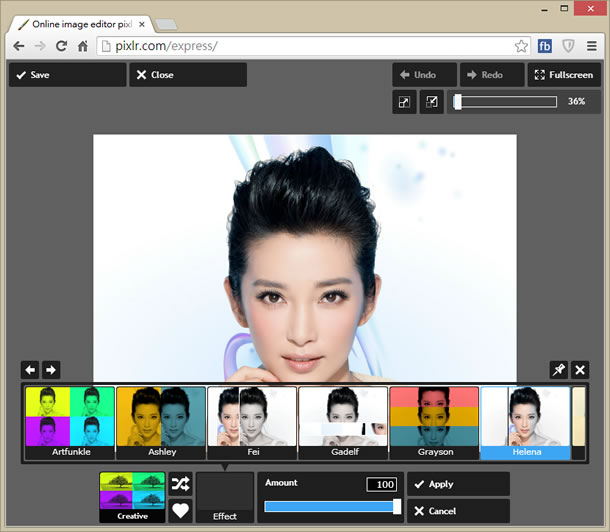 首頁線上工具影像繪圖 Pixlr Express 線上圖片特效免費服務,還可以做美術拼貼 在雲端時代,以往需要在電腦上安裝應用程式中才能完成的工作,像是文書、試算表等文書編輯工具、影像圖片的編輯與後製等等,漸漸的都可脫離這些傳統的應用程式,取而代之的是只要透過瀏覽器便可在線上完成。Pixlr Express 是一個可替圖片加入特效的網路應用免費服務,功能強大,操作卻簡單,讓你快速完成圖片後製的特效工作。 🔔 不錯過任何精彩! 立即訂閱我們的 LINE 官方帳號 每次發佈新文章時,您將會第一時間收到本站文章連結通知,輕鬆掌握最新資訊! 使用 LINE 追蹤文章更新 §相關文章,還可以參閱:照片角度不滿意?AI 幫你調整!3D Camera Control 讓舊照片任意變換視角Meta AI 免費帳戶也能用 Midjourney!無限生成 AI 圖片,台灣可用Nano Banana Pro 幫你放煙火,地點、形狀由你指定Mock.Club:免費 AI Mockup 素材庫,拖曳截圖立即生成專業展示圖Adobe 官方宣布:Photoshop、Express、Acrobat 免費整合 ChatGPT,免費版也能用 如何使用 Pixlr Express ? 1.使用瀏覽器進入 Pixlr Express 網站,可選擇圖片的來源,可以是本機電腦(Browse)、網路上的圖片(Open URL)、或是利用網路攝影機立刻拍一張(Webcam),也可以選擇做美術拼貼(Collage)。 2.載入圖片後,便可透過各分類的功能對圖片進行後製。 3.特效部分基本上都有範例指引,確定套用該效果,可點擊[Apply]。 4.完成後製,點擊左上角的[Save]來儲存,可直接發布到 Facebook 或點擊[Skip]跳過該步驟,儲存到電腦中。 Pixlr Express網站網址:https://pixlr.com/tw/editor/