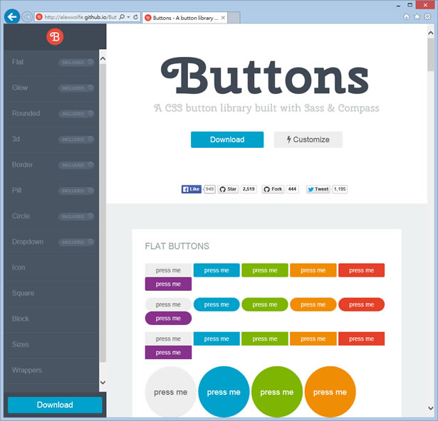 首頁線上工具開發工具 Buttons 線上 CSS 按鈕產生器 製作網頁時,難免會有需要讓使用者點擊的地方,若只是用文字來敘述,雖然簡單明瞭,但卻顯得單調,想要放個按鈕圖示,但卻又礙於要使用圖片,牽涉較廣,若有這些問題,可以來試試這個可以說是 CSS 按鈕寶庫的 Buttons 線上 CSS 按鈕產生器,不但提供 Flat、Glow、Rounded、3D、Border、Pill、Circle、Dropdown(下拉選單)、icon、Square、Block 等各式各樣的按鈕,且配色相當豔麗,使用上更是簡單,只需在網頁特定位置,載入相關連結後,複製想要使用的按鈕樣式到網頁想要應用的位置即可。 🔔 不錯過任何精彩! 立即訂閱我們的 LINE 官方帳號 每次發佈新文章時,您將會第一時間收到本站文章連結通知,輕鬆掌握最新資訊! 使用 LINE 追蹤文章更新 §相關文章,還可以參閱:網站效能健檢免費工具!PageTest 多裝置模擬效能分析及由 AI 提出改進建議Regex-Vis 圖解正則表達式的線上工具,可編寫還可驗證Sitemap Generator:線上快速產生符合 SEO 標準的網站地圖,無網址數量限制適用各類型網站網站隱私權政策產生器 Privacy Policy Generator:輸入網站名稱和網址即可輕鬆生成專屬條款Frame0:輕鬆繪製應用程式流程圖、UML 和介面雛形的免費工具,適用於 macOS 與 Windows 如何使用 Buttons 線上 CSS 按鈕產生器? 1.使用瀏覽器進入上述網址,左側欄可選擇各樣式的按鈕,而在其旁邊,便會顯示所提供的的樣式按鈕。 2.也可以點擊[Customize]來自訂。 3.想要套用這些按鈕時,可將左側欄捲動到最下方,點擊[Form]來看網站提供的說明。 4.原則上就是點擊[Download Buttons]來下載所需的檔案,下載後,請利用壓縮程式進行解壓縮,解壓縮後,會得到三個檔案,如下圖,將檔案複製到網頁相對應位置,並在 <head>~</head>之間,將css與js載入至網頁,並將要使用的按鈕樣式複製到所要呈現的位置即可。 5.網頁執行後,效果立現。 Buttons網站網址:https://unicorn-ui.com/buttons/builder/