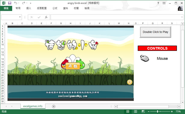 首頁電腦軟體益智遊戲 用 Excel 玩 Angry Birds 簡單的操作又考驗玩家射擊角度的憤怒鳥,推出後,立即暴紅,雖說熱度已過,但若還沒玩過或是想重溫憤怒鳥與豬頭間的重重關卡,可以來試試用 Excel 玩 Angry Birds,同樣可用滑鼠調整射擊角度與力道,讓你更輕鬆玩。 🔔 不錯過任何精彩! 立即訂閱我們的 LINE 官方帳號 每次發佈新文章時,您將會第一時間收到本站文章連結通知,輕鬆掌握最新資訊! 使用 LINE 追蹤文章更新 §相關文章,還可以參閱:Retr0Mine:免安裝經典踩地雷遊戲,可選挑戰難易度「象棋巫師」大師級的免費象棋遊戲(免安裝版)用 Excel 玩俄羅斯方塊bpuzzle 好玩的拼圖遊戲EclipseCrossword 英文填字遊戲產生器 如何使用 Excel 玩 Angry Birds? 1.解壓縮所下載的檔案,用 Excel 開啟「angry birds excel.xls」後,滑鼠雙擊[Double Click to Play]開始載入遊戲,點擊遊戲介面中的[開始]。 2.選擇遊戲關卡。 3.遊戲時的畫面。 Angry Birds excel性質:免費下載:按我前往下載