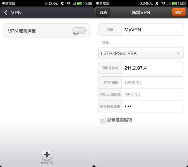 首頁移動設備系統應用 如何使用 Android 系統中內建的 VPN 功能進行 VPN 連線? VPN﹝Virtual Private Network﹞是一種具有保密、傳送端認證與訊息準確性等功能的網路連線技術,因此,其功能除了可以在不安全的網際網路上來傳送可靠及安全的訊息之外,也有很多人是用來突破連線區域的限制,方便存取 VPN 當地的資源來使用。想要讓 Android 作業系統的平板或智慧型手機,使用 VPN 來連線,有 OpenVPN for Android 與 OpenVPN Connect 等應用程式可供使用,不過設定上有些複雜,不利使用者。Android 系統其實有內建 VPN 的連線功能,只要找到有支援 L2TP 通訊協定的 VPN Server 即可免安裝其他應用程式,簡單又輕鬆的便可使用 VPN 的連線功能。 🔔 不錯過任何精彩! 立即訂閱我們的 LINE 官方帳號 每次發佈新文章時,您將會第一時間收到本站文章連結通知,輕鬆掌握最新資訊! 使用 LINE 追蹤文章更新 §相關文章,還可以參閱:「Android」如何關閉或開啟「智慧助手」?[ Android ]如何更改預設的瀏覽器?如何查詢 Android 系統上的 Edge、Chrome 瀏覽器是 32還是 64位元?如何開啟 Android 系統內隱藏的「開發人員選項」功能,方便手機調校?﹝Android﹞如何使用 Google 注音輸入法,打出簡體中文? 如何取得支援 L2TP 通訊協定的 VPN Server? 使用手機或電腦的瀏覽器進入上述網址,並篩選出支援 L2TP 通訊協定的 VPN Server(下圖編號 1、2 的位置),接下來請記住用戶名 vpn 與密碼 vpn(下圖編號 3 的位置)。 Android 如何設定 VPN 連線? 1.開啟設定後,依序點擊 ......更多無線連接 > VPN 。 2.點擊[新增VPN],接下來輸入所需資料: 名稱:請自取 類型:請點擊後選擇 L2TP/IPSec PSK 預先共用金鑰:請填 vpn 完成輸入後,點擊[確定] 3.接下來便會看到剛剛所建立的[MyVPN]連線,點擊後,便會要求輸入使用者名稱與密碼(均為 vpn),再點擊[連線]便可完成連線。 VPN GateAPP性質:免費官方網站:https://www.vpngate.net/cn/