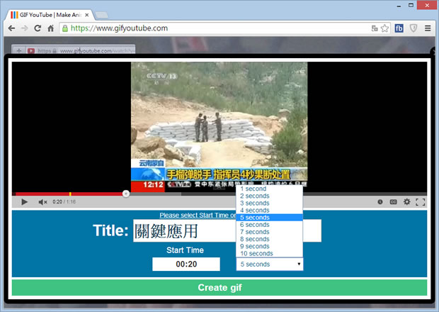 首頁線上工具影像繪圖 GifYouTube 線上將 YouTube 影片轉成 GIF 動畫 Google 的 YouTube 影音分享網站,其影片內容包羅萬象,是很多人搜尋資料、影片發表、休閒娛樂的最佳去處,想要分享影片,YouTube 網站有提供相當便捷內崁影片到網頁的語法,不過那是一整部影片,對只想分享片段的使用者來說,也可以試試利用 GifYouTube 這個免費的將 YouTube 影片轉成 GIF 動畫線上服務,可自選影片的錄製開始時間及其所限定的錄製秒數,簡單好用。 🔔 不錯過任何精彩! 立即訂閱我們的 LINE 官方帳號 每次發佈新文章時,您將會第一時間收到本站文章連結通知,輕鬆掌握最新資訊! 使用 LINE 追蹤文章更新 §相關文章,還可以參閱:跟著做就會!教你用 ChatGPT 製作具職業形象的漫畫風頭像Put!所見即所得的 AI 提示詞圖庫:讓你看著範例圖,複製就能做出同級作品Google 親自示範:Nano Banana AI 圖像編輯工具的 13 個熱門玩法照片角度不滿意?AI 幫你調整!3D Camera Control 讓舊照片任意變換視角Meta AI 免費帳戶也能用 Midjourney!無限生成 AI 圖片,台灣可用 如何使用GifYouTube 將 YouTube 影片轉成 GIF 動畫? 1.使用瀏覽器進入 GifYouTube 網站,將 YouTube 影片網址貼到輸入框中後,點擊[CREATE GIF]。 2.接下來就會出現該影片的資訊,輸入 Title、使用滑鼠拖動影片進度條來設定錄製開始時間(Start Time),緊跟其後的下拉式選單,可選要錄製的秒數,設定好之後,可在影片處看出效果,無誤後,點擊[Creat gif] 。 3.完成錄製後,可分享或在圖片上按滑鼠右鍵來下載該 GIF檔案。 4.以上所過程錄製的 Gif 檔案。 GifYouTube網站網址:https://www.gifyoutube.com/