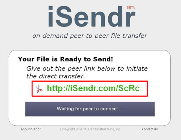 首頁線上工具網路應用 iSendr 超方便的檔案分享服務! iSendr 是一個使用 P2P(Peer to Peer) 技術,免費提供檔案分享服務的網站,只要2個步驟「上傳檔案與取得分享檔案的網址URL」就能完成檔案分享的工作,分享的檔案也提供密碼保護,真的是很方便。 🔔 不錯過任何精彩! 立即訂閱我們的 LINE 官方帳號 每次發佈新文章時,您將會第一時間收到本站文章連結通知,輕鬆掌握最新資訊! 使用 LINE 追蹤文章更新 §相關文章,還可以參閱:VPNLY 完全免費 VPN 工具,四國 20+ 伺服器免註冊無限流量Flying TTFB:免費網站測速工具!22個全球節點幫你找出網站慢在哪Google URL Shortener (goo.gl) 正式告別, 10個優質短網址替代方案推薦Zero Width Shortener (ZWS):隱形短網址的免費縮網址線上工具LibreSpeed SpeedtestCustom:免費網路速度測試工具,提供遠傳、台灣大哥大、中華、亞太等測試主機 如何使用 iSender 所提供的檔案分享功能? 1.進入 iSender 的網站,點擊[Send a File]﹝若要使用密碼保護,請先勾選﹞,若未勾選[Password Protect]時,選擇檔案後,便會開始上傳,並且產生一個該分享檔案的URL網址。 2.若有勾選[Password Protect]會先跳到輸入密碼的頁面,輸入密碼後再點擊[Select File...],選擇要分享的檔案。 3.接下來便會開始上傳檔案並同時產生一個分享的網址,只要將密碼及該分享網只通知下載方,對方就可透過瀏覽器進行下載。 4.實際測試,開啟瀏覽器並將剛剛所產生的網址輸入,便會要求先輸入密碼。 5.輸入密碼後,點擊[OK]便會開始下載,下載完成後點擊[Save As]將檔案儲存到自己本機電腦裡。 iSendr網站網址:http://isendr.com/
