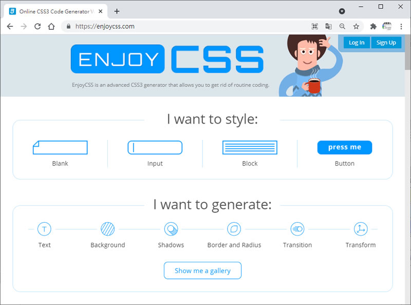首頁線上工具開發工具 Enjoy CSS 線上 CSS 語法產生器 CSS 是可以用來排版與美化網頁內各種元素的腳本語法,不論是整體布局或是內含元素的美化,均需要透過 CSS來完成,而 CSS 語法說難不難,說簡單也不簡單,尤其是對專攻程式或初學者的用戶來說,還是有學習門檻的,但還好網路上這方面的輔助工具有不少,EnjoyCSS 便是其中的一個,透過該網站所設計的介面,使用者僅需調整所需要參數,便可以輕鬆產生網頁常用到的元素,像是文字、輸入欄、按鈕、區塊會使用到的 Text、Background、Shadows、Border and Radius、Transition、Transform 等效果的 CSS 或是 LESS、SCSS 腳本語法,且還提供各瀏覽器所支援的程度,讓你可以快速佈局到自己的網頁內。 🔔 不錯過任何精彩! 立即訂閱我們的 LINE 官方帳號 每次發佈新文章時,您將會第一時間收到本站文章連結通知,輕鬆掌握最新資訊! 使用 LINE 追蹤文章更新 §相關文章,還可以參閱:網站效能健檢免費工具!PageTest 多裝置模擬效能分析及由 AI 提出改進建議Regex-Vis 圖解正則表達式的線上工具,可編寫還可驗證Sitemap Generator:線上快速產生符合 SEO 標準的網站地圖,無網址數量限制適用各類型網站網站隱私權政策產生器 Privacy Policy Generator:輸入網站名稱和網址即可輕鬆生成專屬條款Frame0:輕鬆繪製應用程式流程圖、UML 和介面雛形的免費工具,適用於 macOS 與 Windows 如何使用 Enjoy CSS CSS 語法產生器? 1.使用瀏覽器進入 Enjoy CSS 網站後,便可由圖形看到所提供的網頁元素及其可產生的特效,點擊想要產生的特效樣式,例如點擊[Input]。 2.接下來便可再出現的頁面,左側是元素實物,右側則是參數欄,可依序展開來調整,每調整一次,元素實物便會跟著變化。 3.完成調整,可按下[ Get the code ]來產生 CSS 語法,並會列出語法所支援瀏覽器版本。 Enjoy CSS網站網址:https://enjoycss.com/