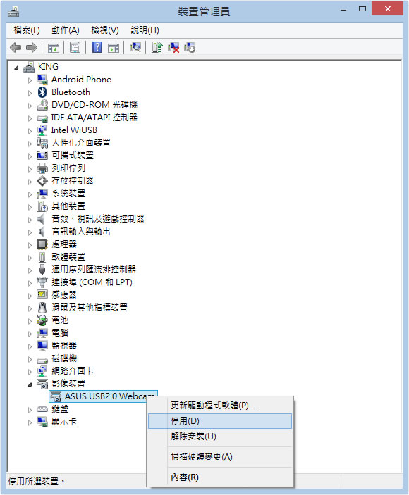 首頁操作技巧Windows 如何在 Windows 停用網路攝影機? 現在網路攝影機可以說是筆記型電腦的標準配備,而且也都內建與電腦一起,無法單獨拿出,當電腦一開機,網路攝影機也已可用,這對不常使用該硬體的用戶來說,除了開機需耗費驅動程式程式的初始化時間,也還需要擔負被有心人士從遠端啟動網路攝影機的風險。若不常使用或是擔心被駭客利用,其實我們可以預設停用 Webcam硬體,等需要使用時再啟用即可。 🔔 不錯過任何精彩! 立即訂閱我們的 LINE 官方帳號 每次發佈新文章時,您將會第一時間收到本站文章連結通知,輕鬆掌握最新資訊! 使用 LINE 追蹤文章更新 §相關文章,還可以參閱:你的 Windows 筆電是真睡還是裝睡?一個設定終結背包發熱耗電學起來!微軟親授 10 個提升 Windows PC 效能的技巧如何升級 Windows 11 25H2?最新版本功能亮點與完整更新步驟Windows 工作列時鐘顯示秒數:真的會影響電池續航力嗎?LTT Labs 完整實測解析Windows 快速取出資料夾檔案名稱清單!內建功能輕鬆搞定,不用額外軟體 如何在 Windows 停用網路攝影機? 1.[控制台] > [裝置管理員]。 2.在開啟的視窗中,找到[影像裝置],展開後,便可以看到內建的網路攝影機型號,使用滑鼠右鍵點擊,便會出現快速功能表,可在此進行停用或啟用。