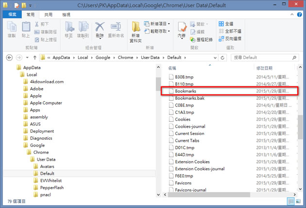 首頁操作技巧瀏覽器 如何備份與還原 Google Chrome 瀏覽器的書籤? Google Chrome 瀏覽器的書籤功能有很好的同步機制,相同帳號不論在哪台電腦與哪處登入,均能存取相同的書籤內容,相當方便,但若無同步的需求,僅想要備份或還原 Chrome 瀏覽器的書籤資料,也只需將 Bookmarks 檔案複製出來即可,相當簡單。 🔔 不錯過任何精彩! 立即訂閱我們的 LINE 官方帳號 每次發佈新文章時,您將會第一時間收到本站文章連結通知,輕鬆掌握最新資訊! 使用 LINE 追蹤文章更新 §相關文章,還可以參閱:如何在 Chrome 中顯示 / 隱藏 AI 模式按鈕?flags 設定教學Google AI 模式正式支援繁體中文:一次搞懂功能、應用與影響Edge 不用開側邊欄!網址列直接輸入提示詞就能 AI 生圖與搜圖Edge、Chrome 瀏覽器複製已開分頁到新分頁,這招你一定要學起來Edge Android 版新增底部網址列功能,來看怎麼設定 如何備份與還原 Google Chrome 瀏覽器的書籤? 1.滑鼠右鍵點擊[開始]按鈕 >[執行] > 輸入 %LocalAppData% 。 2.複製路徑 帳戶\Appdata\Google\Chrome\UserData\Default 下的 Bookmarks 檔案將其存放到其他儲存體,即完成備份;當要還原時,便將該檔案,在複製放回上述路徑即可還原。