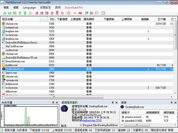 首頁電腦軟體網路應用 NetBalancer Free 網路限速軟體,控制網路頻寬 若用P2P軟體下載或分享檔案,如果採用預設的程式設定(上下傳不設限)時,常會發現網路變得非常的慢,造成其它應用程式無法正常的使用網路,NetBalance 是一套免費的應用程式限速軟體工具,可以限制應用程式在執行時所使用的網路頻寬,將頻寬作更有效的運用。 🔔 不錯過任何精彩! 立即訂閱我們的 LINE 官方帳號 每次發佈新文章時,您將會第一時間收到本站文章連結通知,輕鬆掌握最新資訊! 使用 LINE 追蹤文章更新 §相關文章,還可以參閱:Bright VPN 提供覆蓋全球60多個位置的免費 VPN服務WhoisThisDomain 網域名稱註冊資料免費查詢工具PingInfoView 可自訂時間 PING 自訂的 IP 或網域並發出通知Wireless Network Watcher 找出有哪些裝置正在連你的無線網路IPNetInfo IP 資訊查詢工具 如何使用 NetBalancer ? 1.下載並安裝後,開啟 NetBalancer 主程式後,便會將目前電腦所使用的網路流量以圖形的方式顯示在左下方。 2.滑鼠右鍵點擊欲限速的程式名稱,在出現的右鍵功能表中點擊[限制為...]。 3.在出現的頻寬設定值中輸入限制的頻寬。 NetBalancer版本:11.2.1語言:英文性質:免費(功能限制)適用:Windows官方網站:https://netbalancer.com/下載:按我下載