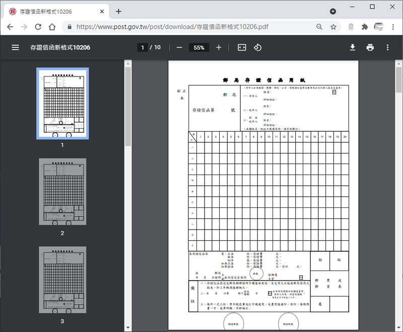 首頁線上工具生活資訊 中華郵政「存證信函」Word 、PDF 檔案免費下載 當自己的權益受到侵害時,例如收不到房租,承租人又東躲西藏避不見面,存證信函便是很多人會利用的手段,雖非萬能,但若以後要對簿公堂,對自己權益的爭取與保護上也能較為有利。想要寄存證信函,可到郵局購買存證信函紙,或到郵局網站下載信函格式,一式三份,寫下相關事由與個人的意思主張後,一張自己保存,一張郵局保存,一張則寄給承租人,郵局會以雙掛號寄出並在對方收到時進行紀錄,以利日後程序的進行。 🔔 不錯過任何精彩! 立即訂閱我們的 LINE 官方帳號 每次發佈新文章時,您將會第一時間收到本站文章連結通知,輕鬆掌握最新資訊! 使用 LINE 追蹤文章更新 §相關文章,還可以參閱:Apple Music 台灣新用戶優惠:6個月免費暢聽,領取方式與限制一次看!2026春節追劇清單!Netflix 2月必看攻略:燒腦推理、火爆動作片,陪你從初一爽追到開工!459 萬人搶 60 萬份!運動幣中獎號碼公布,快查你的身分證尾數都馬一起GO!LINE GO新年優惠最高拿$800優惠券,還有一個月乘車金等你抽過年搭高鐵自由座要排多久?看LINE就知道 台灣高鐵×LINE TODAY推出春節限定燈號預估服務 中華郵政「存證信函」Word 、PDF 檔案免費下載 中華郵政「存證信函」下載網站網址:https://www.post.gov.tw/post/internet/Download/index.jsp?ID=220301相關網址: Word 檔:按我下載 PDF 檔 按我下載 存證信函格式使用說明