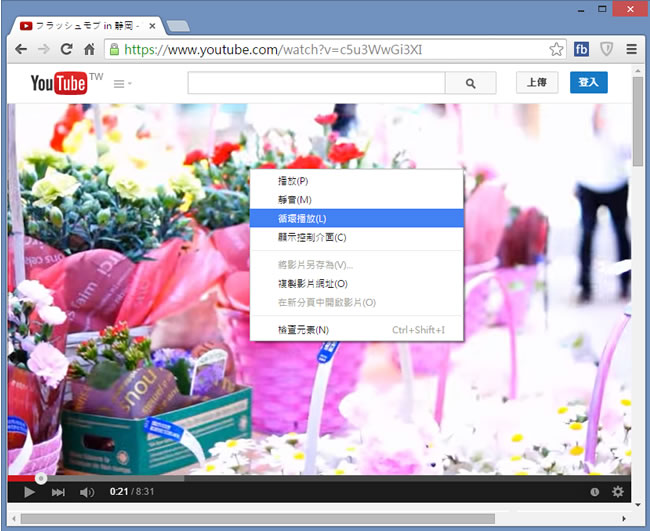 首頁操作技巧Google 輕鬆使用 YouTube 內建的循環播放功能,讓重複播放更簡單 對常使用 YouTube 看影片、聽音樂的用戶來說,每次要重複播放時,都要中斷手邊的工作去重新操作播放,要不就去尋找擴充功能來外掛,體驗感不佳,現在,若使用 Chrome 或 Opera 瀏覽器,你已可以輕鬆使用 YouTube 內建的循環播放功能,讓重複播放更為簡單。 🔔 不錯過任何精彩! 立即訂閱我們的 LINE 官方帳號 每次發佈新文章時,您將會第一時間收到本站文章連結通知,輕鬆掌握最新資訊! 使用 LINE 追蹤文章更新 §相關文章,還可以參閱:別再只會用兩指縮放 Google 地圖了!這些隱藏手勢讓你效率翻倍照著做就會!Google 官方釋出 NotebookLM 簡報製作的 8 種範例教學機車族專屬!Google Maps 推出 5 款超萌機車圖示 × 8 種顏色,設定步驟看這篇Google Skills:3000+ 門課程助你打造 AI 時代競爭力Google Vids 全解析:一文看懂功能、免費版限制及完整操作步驟 如何使用 YouTube 內建的循環播放功能? 1.使用瀏覽器進入 YouTube 的影片網址,在影片上方連按兩次滑鼠右鍵,第一次如下圖。 2.第二次,便會出現[ 循環播放 ]功能選項供你使用。 要取消時,重複前述動作即可。