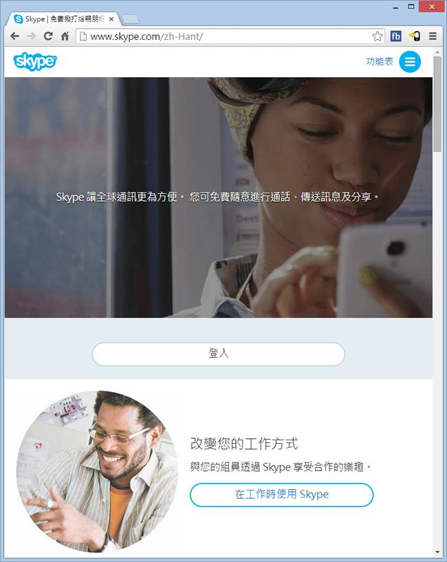 首頁線上工具社群與通訊 Skype 網頁版,讓你免裝軟體就能視訊、語音聊天 微軟的 Skype 通訊軟體,其功能相當廣,除了大家所熟知基本的傳送檔案、文字聊天、網路語音、視訊通話、多方通話外,還有就是可以在超商或網路上購買通話點數,讓你利用電腦或移動設備發簡訊、撥市話、行動電話與國際電話,若撥打 Skype 帳號,還可設定要轉接的電話號碼,且其費率又比傳統的計價更優化,通話品質也堪稱清晰、流暢,因此不論在個人或商用都相當收歡迎。現在微軟也推出 Skype 網頁版,讓你免裝軟體就能使用視訊、語音盡情地聊天。 🔔 不錯過任何精彩! 立即訂閱我們的 LINE 官方帳號 每次發佈新文章時,您將會第一時間收到本站文章連結通知,輕鬆掌握最新資訊! 使用 LINE 追蹤文章更新 §相關文章,還可以參閱:你的 LINE 圖示還是綠色的嗎?Premium 會員限定更換功能,免費版有 2 款可體驗每月 165 元買什麼?LINE Premium 與免費版功能差異一次看清楚LINE 行事曆怎麼用?在聊天室建行程、設提醒、跨群組管理一次學會LINE 內建新字體「文鼎白玉書體」!3 步驟免費更換超文青字型你答對了嗎?LINE 防詐模擬考最多人答錯的 3 大題,你中了幾題? 如何使用 Skype 網頁版? 1.使用瀏覽器進入 Skype 網頁版後,若頁面出現非慣用語言,可在點擊[ 登入 ]來修改。 2.登入後,操作方法基本都與視窗版的 Skype 相同。 Skype網站網址:http://www.skype.com/zh-Hant/