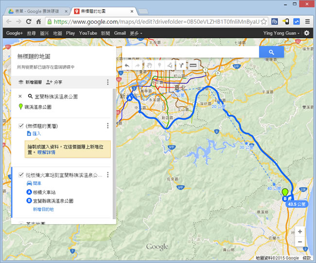 首頁操作技巧Google 如何利用 Google 雲端硬碟建立、分享自訂我的地圖? 旅遊的行程規劃,如果要用說的,估計就只能說個大概,若能夠搭配地圖,不論是用說的還是用看的應該就能很清楚,透過 Google 雲端硬碟我們可以來建立、分享自訂我的地圖,讓每個成員都能清楚旅遊路線,節省旅遊中還要用電話溝通的麻煩。 🔔 不錯過任何精彩! 立即訂閱我們的 LINE 官方帳號 每次發佈新文章時,您將會第一時間收到本站文章連結通知,輕鬆掌握最新資訊! 使用 LINE 追蹤文章更新 §相關文章,還可以參閱:別再只會用兩指縮放 Google 地圖了!這些隱藏手勢讓你效率翻倍照著做就會!Google 官方釋出 NotebookLM 簡報製作的 8 種範例教學機車族專屬!Google Maps 推出 5 款超萌機車圖示 × 8 種顏色,設定步驟看這篇Google Skills:3000+ 門課程助你打造 AI 時代競爭力Google Vids 全解析:一文看懂功能、免費版限制及完整操作步驟 如何利用 Google 雲端硬碟建立、分享自訂我的地圖? 1.進入 Google 雲端硬碟,點擊[ 新增 ] > [ 更多 ] > [ Google 我的地圖 ]。 2.接下來我們就可以看到 Google 地圖及地圖上方的工具。 3.例如要建立旅遊路線,可透過搜尋功能來找尋目的地後,搭配上方的地圖工具與左側的文字引導輕鬆建立出旅遊路線。 4.完成後,點擊[ 儲存 ],便可以分享。
