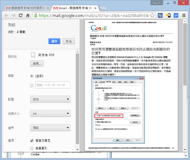 首頁操作技巧Google 如何將 GMail 內的郵件轉為 PDF 檔案? 想要將電子郵件內容,轉為 PDF 檔案來儲存,如果你是 Google GMail 的使用者,將可以利用 GMail 的內建功能,輕輕鬆鬆就能將郵件內容儲存成 PDF 檔案。 🔔 不錯過任何精彩! 立即訂閱我們的 LINE 官方帳號 每次發佈新文章時,您將會第一時間收到本站文章連結通知,輕鬆掌握最新資訊! 使用 LINE 追蹤文章更新 §相關文章,還可以參閱:別再只會用兩指縮放 Google 地圖了!這些隱藏手勢讓你效率翻倍照著做就會!Google 官方釋出 NotebookLM 簡報製作的 8 種範例教學機車族專屬!Google Maps 推出 5 款超萌機車圖示 × 8 種顏色,設定步驟看這篇Google Skills:3000+ 門課程助你打造 AI 時代競爭力Google Vids 全解析:一文看懂功能、免費版限制及完整操作步驟 如何將 GMail 內的郵件轉為 PDF 檔案? 1. 進入 GMail 後,點擊想要轉為 PDF 檔案的電子郵件。 2.點擊[ 全部列印 ]圖示按鈕 > 點擊[ 變更 ]後,選擇[ 另存為 PDF ] > [ 儲存 ]即可。