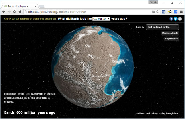 首頁線上工具生活資訊 Ancient Earth globe 來看看 Google 對地球樣貌所詮釋的演進 一直以來人類對地球的演進過程,始終有多種推斷,且各有各的立論基礎,除非想認真的去了解,不然實在很難在短時間之內,就能有全盤的概念,而 Google 推出 Ancient Earth globe 的實驗網站,從地球開始有生命跡象的 6億年前開始演進,以一個可 360度旋轉的地球呈現地球各處的地形、地貌的演進,在每個重要的歷史時間點輔以說明,快速了解地球與生命的推進過程。 🔔 不錯過任何精彩! 立即訂閱我們的 LINE 官方帳號 每次發佈新文章時,您將會第一時間收到本站文章連結通知,輕鬆掌握最新資訊! 使用 LINE 追蹤文章更新 §相關文章,還可以參閱:Apple Music 台灣新用戶優惠:6個月免費暢聽,領取方式與限制一次看!2026春節追劇清單!Netflix 2月必看攻略:燒腦推理、火爆動作片,陪你從初一爽追到開工!459 萬人搶 60 萬份!運動幣中獎號碼公布,快查你的身分證尾數都馬一起GO!LINE GO新年優惠最高拿$800優惠券,還有一個月乘車金等你抽過年搭高鐵自由座要排多久?看LINE就知道 台灣高鐵×LINE TODAY推出春節限定燈號預估服務 Google Ancient Earth globe 網站介紹 1.使用瀏覽器進入 Ancient Earth globe 網站後,預設的時間會是在 6 億年前,可透過鍵盤左右建來切換時間點。 2.想要快速了解動、植物的生命起源時間點,可透過介面右上角來選擇,其左下角會有相對的說明。 3.想要了解史前生物,像是恐龍,也可以點擊左上角的 Check out our database of prehistoric creatures! 史前生物數據庫來了解。 Ancient Earth globe網站網址:https://dinosaurpictures.org/ancient-earth/#240