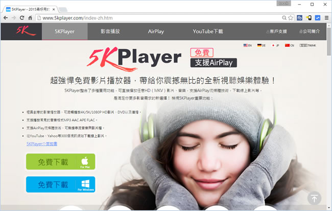 - 官方網站:https://www.5kplayer.com/index-zh.htm