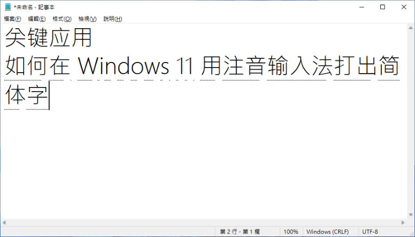 3.接下來開啟文書編輯軟體,使用自己熟系的輸入法,便可看到輸入的簡體字。