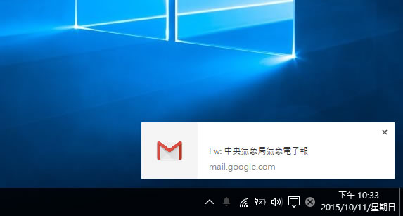 4.當 Gmail 收到新郵件時,便會在 Window 桌面彈出新郵件通知。