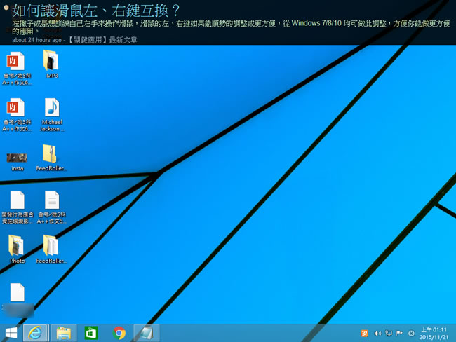 首頁電腦軟體電子書與閱讀 FeedRoller RSS Ticker 讓 RSS 所訂閱的資訊在桌面上輪播 網站大多有提供 RSS 訂閱的功能,讓用戶能使用 RSS 訂閱軟體接收訂閱網站所發布的最新資訊,不過,有訂不見得能即時閱,多數原因是還要開啟 RSS 訂閱軟體才能接收,想要免除這個麻煩,就讓 FeedRoller RSS 這套免費軟體將接受到的 RSS 資訊,及時在桌面上輪播,讓你使用快速鍵一按就能直達該網址來閱讀,相當方便。 🔔 不錯過任何精彩! 立即訂閱我們的 LINE 官方帳號 每次發佈新文章時,您將會第一時間收到本站文章連結通知,輕鬆掌握最新資訊! 使用 LINE 追蹤文章更新 §相關文章,還可以參閱:PDFNarrator 將 PDF 檔案內容轉出 MP3 語音的免費應用程式Newsflow 免費 RSS訂閱工具,自動接收網站最新資訊Calibre 電子書開啟、製作與管理免費軟體PDF-XChange Viewer 免費的 PDF 檔案閱讀器(免安裝繁體中文版)EDS Google Books Downloader 「Google 圖書」免費下載器 如何使用 FeedRoller RSS ? 1.解壓縮所下載的免安裝版檔案,執行「FeedRoller.exe」便可開啟,開啟後會在桌面的上方出現所訂閱的 RSS 資訊。 2.要增加 RSS 訂閱,可在桌面右下角使用滑鼠右鍵點擊 FeedRoller RSS 的圖示,便會出現功能表,點擊[ Manage Feeds ]。 3.將複製好的 RSS 網址貼到設定視窗中,點擊[ ok ]即可。 4.另外,可以針對輪播停留時間、輪播特效進行設定。 5.針對輪播目前所看到資訊,預設是使用鍵盤[ Print Screen SysRq ]鍵來開啟,若覺得不適合,可更改 Visit 該項,自行選定快速鍵。 FeedRoller RSS版本:0.65語言:英文性質:免費適用:Windows官方網站:https://sector-seven.com/下載:免安裝版 按我下載