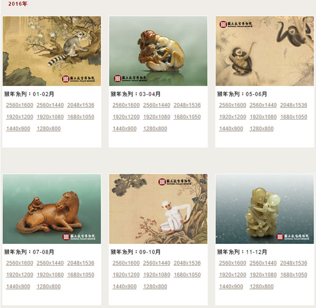 首頁電腦軟體視窗桌面 國立故宮博物院 - 2016年猴年系列靜態月曆桌布免費下載 喜愛在電腦螢幕放張月曆當背景,可以參考「國立故宮博物院」所推出的 2016年猴年系列靜態月曆桌布,每兩個月為一張,共有 2560x1600、2560x1440、2048x1536、1920x1200、1920x1080、1680x1050、1440x900 與 1280x800 等 8種尺寸可供選擇,其中行事曆是按行政院人事行政總處所公布的「中華民國 105年政府行政機關辦公日曆表」休假日來安排,見紅就休,更方便在上班之餘安排自己的休假活動。 🔔 不錯過任何精彩! 立即訂閱我們的 LINE 官方帳號 每次發佈新文章時,您將會第一時間收到本站文章連結通知,輕鬆掌握最新資訊! 使用 LINE 追蹤文章更新 §相關文章,還可以參閱:Windows 官方桌布商店來了!超過 400 款風格包,從遊戲到國家公園通通有微軟 City Art Search 自動將 10400多幅世界名畫設置成 Windows 鎖定螢幕畫面Digital Clock 4 可靈活自訂的桌面時鐘,支援報時、計時器、鬧鐘等多款附加套件TrafficMonitor 在 Windows 桌面上顯示網路上傳與下載的即時網速「免費下載」故宮博物院 2023 兔年月曆桌布 何下載國立故宮博物院 - 2016年猴年系列靜態月曆桌布? 1.使用瀏覽器進入 國立故宮博物院 - 2016年猴年系列靜態月曆桌布 便可看到 2個月為一張的月曆。 2.點擊所要尺寸來下載,開啟後,使用滑鼠右鍵點擊,便可將圖片設為背景。 國立故宮博物院性質:免費官方網站:http://www.npm.gov.tw/zh-TW/Article.aspx?sNo=03001536