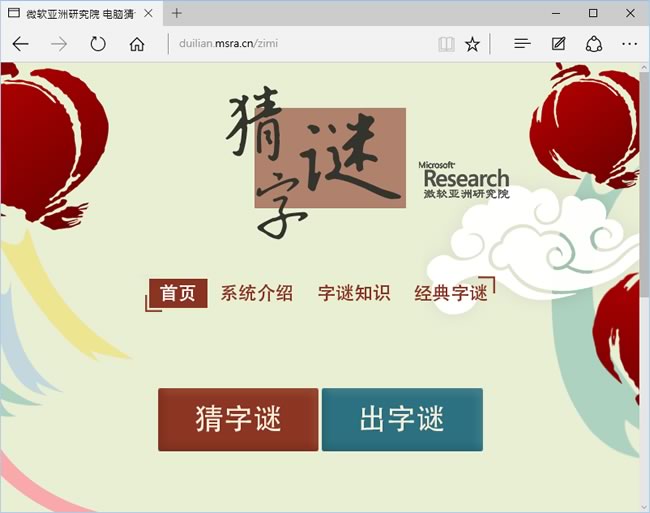 首頁線上工具生活資訊 想猜字謎、出字謎,就來微軟亞洲研究院電腦猜謎 元宵節的經典活動莫過於猜燈謎,透過相關的形容詞與提示,來考驗猜謎者的聯想與反應,相當有趣,想要試試自己在字謎的功力,或是想要辦活動需要出字謎題目,不妨可以試試微軟亞洲研究院的電腦猜謎網站,可以猜其已出好的題目或出題目給電腦猜,也可以輸入一個字,由系統幫你出題,揮別早已被收錄且大家都知道答案的燈謎題目。 🔔 不錯過任何精彩! 立即訂閱我們的 LINE 官方帳號 每次發佈新文章時,您將會第一時間收到本站文章連結通知,輕鬆掌握最新資訊! 使用 LINE 追蹤文章更新 §相關文章,還可以參閱:Apple Music 台灣新用戶優惠:6個月免費暢聽,領取方式與限制一次看!2026春節追劇清單!Netflix 2月必看攻略:燒腦推理、火爆動作片,陪你從初一爽追到開工!459 萬人搶 60 萬份!運動幣中獎號碼公布,快查你的身分證尾數都馬一起GO!LINE GO新年優惠最高拿$800優惠券,還有一個月乘車金等你抽過年搭高鐵自由座要排多久?看LINE就知道 台灣高鐵×LINE TODAY推出春節限定燈號預估服務 如何利用微軟亞洲研究院-電腦猜謎網站猜字謎、出字謎? 1.使用瀏覽器進入 微軟亞洲研究院電腦猜謎 在猜字謎的部分,可以猜其已出好的題目或出題目給電腦猜。 2.解答部分,可以參考其推理過程。 3.出字謎,可以輸入一個關鍵字,由系統幫你出題目。 微軟亞洲研究院電腦猜謎網站網址:http://duilian.msra.cn/zimi/