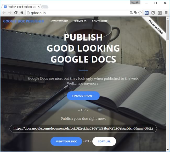 首頁線上工具生產力工具 如何讓 Google 文件, 發佈到網路時能保持完整格式? Google 雲端硬碟內,可讓我們如同 Word 般的建立文件( Google Doc),而且完全免費,當我們編輯完成後,如果發佈到網路時,某些文件會碰到格式跑掉的問題,特別是有圖片內容的文件,雖不影響閱讀,但是辛辛苦苦所建立的文件,卻不能完美的呈現,還是會覺得缺憾,如何才能讓格式完整的發佈到網路上?現在只要透過 Google Doc Publisher 這個網站,便能輕鬆呈現。 🔔 不錯過任何精彩! 立即訂閱我們的 LINE 官方帳號 每次發佈新文章時,您將會第一時間收到本站文章連結通知,輕鬆掌握最新資訊! 使用 LINE 追蹤文章更新 §相關文章,還可以參閱:Google AI Plus 降到 260 元對決 ChatGPT Go!誰的功能更值得訂閱?ChatGPT Go 月付 290 元值得嗎?免費版、Plus 完整比較用 AI 做出的電影,YouTube 就看得到!一起來欣賞這部贏得百萬美元的突尼西亞短片《Lily》Apple Creator Studio 來了:Final Cut Pro、Logic Pro 等九款 App 月付 390 元,學生優惠僅 90 元ChatGPT 智慧購物功能登台!台灣用戶也能用 AI 做商品研究與比價 如何讓 Google 文件, 發佈到網路時能保持完整格式? 1.使用Google 文件內建的發佈到網路的功能,所呈現出來的格式。 2.利用取得的網址來瀏覽時,會因為視窗大小的問題而呈現非原排版樣式。 3.使用瀏覽器進入 Google Doc Publisher ,將取得的網址複製貼到輸入框內後按[ VIEW YOUR DOC ],便能取得新網址,並且瀏覽該文件。 Google Doc Publisher網站網址:http://gdoc.pub/