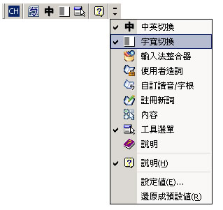 另外,若要輸入中文使用的標點符號:按住 Ctrl 鍵,再加上您要的標點符號,即可得到全型的標點符號,例如在輸入,(逗號) 時,您需要先按住 Ctrl 鍵再加上 , (逗號)。有時候您需要加上 Shift 鍵,例如在輸入?(問號) 時,您就需要先按住 Ctrl 及 Shift 鍵再加上 ? (問號) 即可。