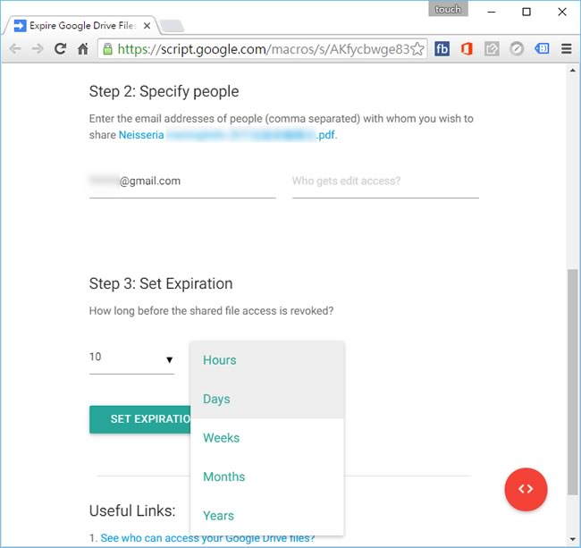 首頁操作技巧Google 如何設定 Google 雲端硬碟內檔案分享的自動到期日? Google 雲端硬碟不但可以建立文件、試算表、簡報、表單、地圖...等檔案,更可以將檔案上傳,並取得要分享的鏈結,快速地應用在網路上,但一經分享,日後想要停止分享,除非有很好的管理能力,不然等分享的檔案變多,自己也可能搞不清楚是哪個檔案。如果能在設定分享的同時,就給出一個停止分享日期,相信會是個好作法,現在,你可以透過 Google Drive Auto Expire Files 這項免費服務,來設定檔案要終止分享的期限,期能讓檔案分享作更有效的控管。 🔔 不錯過任何精彩! 立即訂閱我們的 LINE 官方帳號 每次發佈新文章時,您將會第一時間收到本站文章連結通知,輕鬆掌握最新資訊! 使用 LINE 追蹤文章更新 §相關文章,還可以參閱:別再只會用兩指縮放 Google 地圖了!這些隱藏手勢讓你效率翻倍照著做就會!Google 官方釋出 NotebookLM 簡報製作的 8 種範例教學機車族專屬!Google Maps 推出 5 款超萌機車圖示 × 8 種顏色,設定步驟看這篇Google Skills:3000+ 門課程助你打造 AI 時代競爭力Google Vids 全解析:一文看懂功能、免費版限制及完整操作步驟 如何使設定 Google 雲端硬碟內檔案分享的自動到期日? 1.使用瀏覽器進入 PDF Tools Online 網站,點擊[ Review Permissions ]來給該項服務授權。 2.完成授權,接下來按照其指引開啟雲端硬碟,並選擇要設定分享到期日的檔案。 3.設定分享用戶與分享到期日,最後,按[ SET EXPIRATION ]來完成設定。