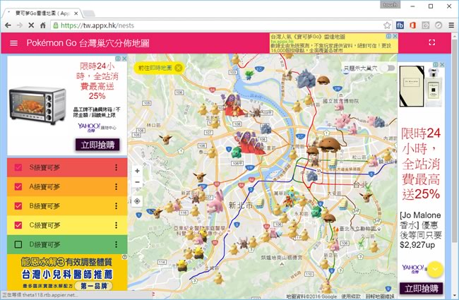 首頁線上工具益智遊戲 一次擁有寶可夢Go雷達地圖、巢穴分佈地圖、IV計算器 原預計開學後瘋抓寶可夢的熱潮會衰退些,但到休假日,人潮依舊,要抓想要的寶可夢精靈,工具當然不可少,首先要有即時雷達地圖,再來,要有巢穴分佈地圖,要更快進階就得靠 IV計算器,至於這些工具哪裡找,透過寶可夢Go雷達地圖、巢穴分佈地圖、IV計算器這個三合一網站,讓遊戲更有效率。 🔔 不錯過任何精彩! 立即訂閱我們的 LINE 官方帳號 每次發佈新文章時,您將會第一時間收到本站文章連結通知,輕鬆掌握最新資訊! 使用 LINE 追蹤文章更新 §相關文章,還可以參閱:Google Doodle 萬聖節遊戲登場!小精靈 45 週年特別版完整介紹毫秒級反應力大挑戰!用 Reaxon 訓練大腦、眼睛與手的協調反應2048 Cupcakes 經典單人 2048 滑塊線上遊戲,AI 輔助輕鬆挑戰高分免費線上拼圖遊戲平台:iLoveJigsaw 可自行上傳圖片製作拼圖Songlio:線上聽音樂猜歌曲名稱遊戲,可自訂歌曲題庫並與多人一起挑戰 寶可夢Go雷達地圖、巢穴分佈地圖、IV計算器三合一網站介紹 1.寶可夢Go雷達地圖,滑鼠雙擊,可開啟 AR(擴增實境)。 2.巢穴分布地圖。 寶可夢Go相關網址: 寶可夢Go雷達地圖(AppX台灣版) Pokémon Go 台灣巢穴分佈地圖 IV計算器 精靈列表 招式列表