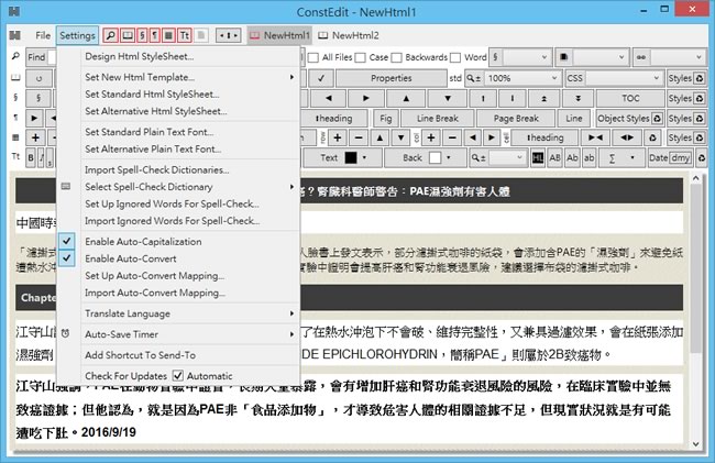 首頁電腦軟體生產力工具 ConstEdit 免費的 HTML 編輯器,適合用來建立和編輯 HTML 和 HTML5 檔案 文書編輯時,如果可以 HTML 化,不但可以透過 CSS 語法進行美化,對於閱讀者來說,也只要使用內建在作業系統內的瀏覽器便可開啟閱讀,優點不少,ConstEdit 就是一套簡易的 HTML 編輯器,使用起來就像使用 Word 般的方便,編輯的文件,除了可以以 HTML 的格式來存檔,亦可以轉成 PDF 或 TXT 文字檔,相當方便。 🔔 不錯過任何精彩! 立即訂閱我們的 LINE 官方帳號 每次發佈新文章時,您將會第一時間收到本站文章連結通知,輕鬆掌握最新資訊! 使用 LINE 追蹤文章更新 §相關文章,還可以參閱:AingDesk:一鍵安裝 Ollama AI 模型管理器,讓 LLaMA、DeepSeek 在本機電腦上運行Arc 瀏覽器正式登陸 Windows 11,開啟全新瀏覽體驗!Norton Secure Browser 使用 Chromium 核心的瀏覽器,有廣告封鎖和隱私保護功能BingGPT 桌面應用程式,讓你不用 Edge 也能用 Bing 聊天機器人SlippyClerk 數字、英文字母有序字串產生器 可自訂前後綴字詞 如何使用 ConstEdit ? 1.完成安裝,開啟 ConstEdit,會有授權說明,如果確定是個人使用,可以選擇中間項。 2.可以點擊[ File ]來新增 Html 文件,並在完成編輯後,依需要的檔案格式來存檔。 3.在 Settings 功能表,可以編輯樣式來套用,設定如文件樣式、插入時間 ConstEdit版本:2.9.9語言:英文性質:非商業使用免費適用:Windows官方網站:https://www.constedit.com/下載:按我下載