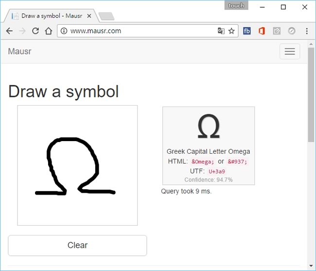 首頁線上工具生產力工具 Mausr 用畫的就能輕鬆找到你想要的特殊符號 想要應用特殊符號,像是 →,×,≠,ℝ, » ...等等,通常都有 HTML 或 UTF 代碼可供查詢,只不過這個查詢可能是需要用眼睛一個個看是否是自己想要的特殊符號,相當累人,Mausr 是一個線上應用,主要功能就是提供一個繪圖板,讓你可以畫出特殊符號的圖形,並幫你比對找出相關的特殊符號,讓特殊符號的應用更為簡單與方便。 🔔 不錯過任何精彩! 立即訂閱我們的 LINE 官方帳號 每次發佈新文章時,您將會第一時間收到本站文章連結通知,輕鬆掌握最新資訊! 使用 LINE 追蹤文章更新 §相關文章,還可以參閱:OpenAI 在 ChatGPT 中測試廣告|哪些帳戶受影響、廣告運作原則一次看在蝦皮當賣家,商品如何定價?手續費、免運、稅金怎麼算?蝦皮手續費計算機幫你全搞定!Google AI Plus 降到 260 元對決 ChatGPT Go!誰的功能更值得訂閱?ChatGPT Go 月付 290 元值得嗎?免費版、Plus 完整比較用 AI 做出的電影,YouTube 就看得到!一起來欣賞這部贏得百萬美元的突尼西亞短片《Lily》 如何使用 Mausr 找出特殊符號的 HTML 或 UTF 代碼? 1.使用瀏覽器進入 Mausr 網站,使用滑鼠在繪圖板畫出符號,便能找出相關特殊符號。 2.畫不出來,也可以利用特殊符號列表來查找。 Mausr網站網址:http://www.mausr.com/