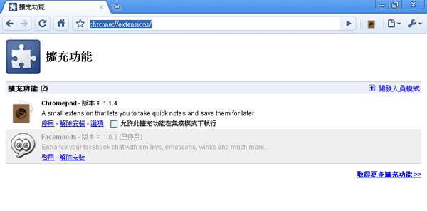 1.顯示瀏覽器已安裝的擴充功能:chrome://extensions/。