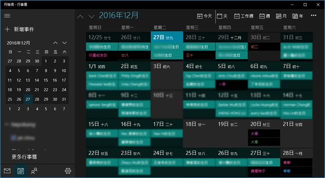 首頁操作技巧Windows 如何關閉或開啟 Windows 10 行事曆上 Facebook 上好友的生日資訊? 在 Windows 10 作業系統中,如果使用的 Microsoft 帳號,或是接收的郵件帳號與 Facebook 帳號有關聯,預設在行事曆上均會列出 Facebook 上好友的生日資訊,讓你再登入 Windows 時,就可以看到提示,這對很多人來說也許是相當方便的功能,但對某些人來說又是一種困擾,其實只要經過簡單的設定,就可以讓行事曆顯示或不顯示 Facebook 上好友的生日資訊。 🔔 不錯過任何精彩! 立即訂閱我們的 LINE 官方帳號 每次發佈新文章時,您將會第一時間收到本站文章連結通知,輕鬆掌握最新資訊! 使用 LINE 追蹤文章更新 §相關文章,還可以參閱:學起來!微軟親授 10 個提升 Windows PC 效能的技巧如何升級 Windows 11 25H2?最新版本功能亮點與完整更新步驟Windows 工作列時鐘顯示秒數:真的會影響電池續航力嗎?LTT Labs 完整實測解析Windows 快速取出資料夾檔案名稱清單!內建功能輕鬆搞定,不用額外軟體Windows 11 如何縮小工作列圖示按鈕,打造更精簡桌面視覺 如何關閉或開啟 Windows 10 行事曆上 Facebook 上好友的生日資訊? 1.開啟Windows 10 行事曆,預設就會顯示Facebook 好友的生日資訊。 2.找到相關帳號,將 Contacts 取消勾選,行事曆上就簡潔多了。