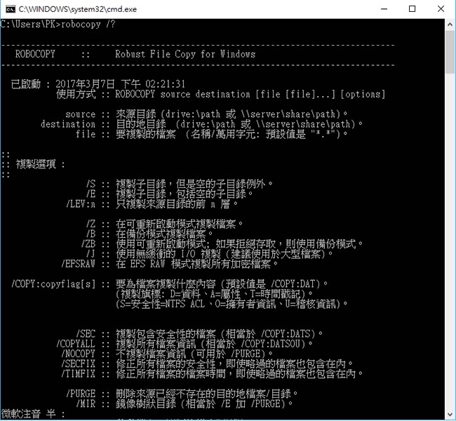 如何利用 Windows 內建指令 robocopy 進行同步備份、差異化備份、複製、移動大量檔案?