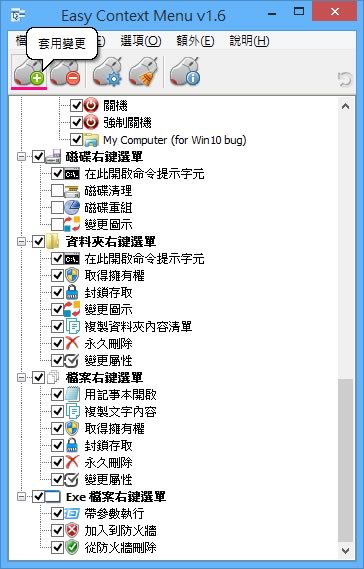 首頁電腦軟體系統應用 Easy Context Menu 輕鬆編輯滑鼠右鍵功能表免費工具 Windows 作業系統,針對每個常用的物件會設計不同的滑鼠右鍵功能表,意思是當我們對一個資料夾或對一個檔案使用滑鼠右鍵點擊時,其出現的右鍵功能表是不同的,Windows 本身並無提供可編輯這些功能表的工具,如果想要編輯,可以透過 Easy Context Menu 這套應用程式來進行,該應用程式提供像是桌面、我的電腦、系統工具、關機選項、資料夾、檔案....等等常用的操作,在原有的選單項目上再加入新的功能,讓操作更方便。 🔔 不錯過任何精彩! 立即訂閱我們的 LINE 官方帳號 每次發佈新文章時,您將會第一時間收到本站文章連結通知,輕鬆掌握最新資訊! 使用 LINE 追蹤文章更新 §相關文章,還可以參閱:CatLock:可鎖定鍵盤的 Windows 應用程式,防止寵物意外觸碰Zen Ad blocker 瀏覽器與應用程式均適用的廣告攔截器,免費且開放原始碼TimVer 一站式顯示 Windows 版本及電腦硬體相關訊息的工具「微軟電腦管家」內含開機啟動項目管理、儲存空間最佳化等免費工具 全方位提升電腦效能Windows Startup Timer 測量 Windows 從開機到完全啟動所需時間 如何使用 Easy Context Menu 來編輯滑鼠右鍵功能表? 1.解壓縮所下載的檔案,執行「EcMenu.exe」便可開啟。 2.開啟後,如果介面語言不對,可以點擊[ 選項 ] > [ Language ]來選擇。 3.針對所要編輯的右建功表進行功能加入,例如資料夾右鍵選單,選擇要加入的功能後,記得要按左上方功能表的套用變更。 4.完成後,重新啟用檔案總管,當在任何的資料夾使用滑鼠右鍵點擊所出現的功能中便會有剛剛所加入的功能項目。 5.如果要回復之前 Windows 預設的功能表,可以透過全部解除安裝來執行。 6.如果要對功能表的功能編輯或想加入自訂的選單,可以透過清單編輯器來執行。 Easy Context Menu版本:1.6語言:中、英文(多國語言)性質:免費適用:Windows官方網站:https://www.sordum.org/7615/easy-context-menu-v1-6/下載:按我下載