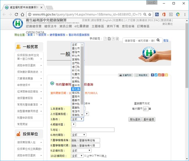 首頁線上工具生活資訊 如何查詢周六、日有看診的健保特約醫療院所? 對一般上班族、學生而言,如果平日需要看診,大概都是選擇晚上就醫,如果週六、日需就醫,普遍的印象都是周六白天還有看診,晚上不確定,但週日通常是不看診的,其實,想要知道健保特約醫療院所的看診時間及資訊,不用區碰運氣也不需要猜,只要透過衛生福利部中央健康保險署的網站,就能篩選出住家附近周六、日有看診的醫療院所,讓就醫更省時方便。 🔔 不錯過任何精彩! 立即訂閱我們的 LINE 官方帳號 每次發佈新文章時,您將會第一時間收到本站文章連結通知,輕鬆掌握最新資訊! 使用 LINE 追蹤文章更新 §相關文章,還可以參閱:Apple Music 台灣新用戶優惠:6個月免費暢聽,領取方式與限制一次看!2026春節追劇清單!Netflix 2月必看攻略:燒腦推理、火爆動作片,陪你從初一爽追到開工!459 萬人搶 60 萬份!運動幣中獎號碼公布,快查你的身分證尾數都馬一起GO!LINE GO新年優惠最高拿$800優惠券,還有一個月乘車金等你抽過年搭高鐵自由座要排多久?看LINE就知道 台灣高鐵×LINE TODAY推出春節限定燈號預估服務 如何利用衛生福利部中央健康保險署-看診時段查詢? 1.使用瀏覽器進入 衛生福利部中央健康保險署-看診時段查詢 網站,可選擇要篩選的條件。 2.其中,縣市、鄉鎮市區、特約類別( 醫學中心、區域醫院、地區醫院、診所 )、診療科別、診療時段等參數組合就能篩選出。 3.點擊所篩選出的資料,可獲得更為詳盡的資訊。 衛生福利部中央健康保險署-看診時段查詢資訊網站網址:https://www.nhi.gov.tw/QueryN/query14.aspx?n=0B12314F50D38FCC&sms=36A0BB334ECB4011&topn=5FE8C9FEAE863B46