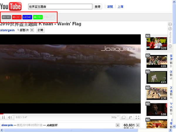 5.接下來進入YouTube 網站,進入後便會在畫面的左邊看到 YouTube HD Suite 的外掛標籤。