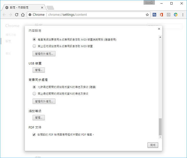 首頁操作技巧瀏覽器 如何強制 Chrome 瀏覽器使用 Windows 預設的應用程式來開啟 PDF 文件? 當使用 Google Chrome 瀏覽器瀏覽網頁時,如果遇到要開啟 PDF 文件,通常會直接在 Chrome 瀏覽器上來開啟,即便是已經在 Windows 系統中有預設的開啟程式,例如 Adobe Acrobat PDF Reader 應用程式,同樣會使用 Chrome 來開啟,沒得選擇,這對僅要開啟閱讀的用戶可能還可以,但對後續的進階應用有需求的用戶,這樣的做法可能是種困擾,該如何才能簡化開啟步驟,讓 PDF 檔案可以回歸到 Windows 作業系統自己所預設的開啟應用程式來開啟呢? 🔔 不錯過任何精彩! 立即訂閱我們的 LINE 官方帳號 每次發佈新文章時,您將會第一時間收到本站文章連結通知,輕鬆掌握最新資訊! 使用 LINE 追蹤文章更新 §相關文章,還可以參閱:如何在 Chrome 中顯示 / 隱藏 AI 模式按鈕?flags 設定教學Google AI 模式正式支援繁體中文:一次搞懂功能、應用與影響Edge 不用開側邊欄!網址列直接輸入提示詞就能 AI 生圖與搜圖Edge、Chrome 瀏覽器複製已開分頁到新分頁,這招你一定要學起來Edge Android 版新增底部網址列功能,來看怎麼設定 如何強制 Chrome 瀏覽器使用預設的應用程式中開啟 PDF 文件? 1.首先確定 Windows 作業系統中已對 PDF 檔案預設要開啟的應用程式,其步驟可以開啟設定視窗,來加入或更改 PDF 預設開啟的應用程式。 2.接下來,打開 Chrome 瀏覽器,在網址列上輸入 chrome://settings/content 後,按 Enter 鍵,將網頁捲動到最底端,便可勾選 。