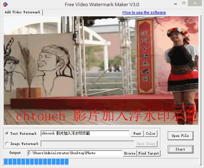 首頁電腦軟體影音視聽 DVDVideoMedia Free Video Watermark Maker 幫影片加入文字或圖片浮水印 現在用手機拍攝影片很簡單,且畫質都不差,且隨時可透過社交或影音平台來發布分享,對於公開的影片,如果想要保護自己所拍攝的影片,最簡單的方式就是將影片內容加上浮水印,這樣,無論影片如何被轉貼,都讓觀看的人可以知道影片的出處。想要在影片加入浮水印,最簡單方式就是使用 DVDVideoMedia Free Video Watermark Maker 這套免費的應用程式,操握簡單,可讓你加入文字或圖片的浮水印,且浮水印位置可自由調整。 🔔 不錯過任何精彩! 立即訂閱我們的 LINE 官方帳號 每次發佈新文章時,您將會第一時間收到本站文章連結通知,輕鬆掌握最新資訊! 使用 LINE 追蹤文章更新 §相關文章,還可以參閱:超實用免費軟體!DCP-o-matic 讓你的影片變成電影院 DCP 播放格式語音轉文字免費工具 AsrTools 輕鬆搞定字幕、筆記或歌詞整理免費的 PotPlayer 開始搭載 Whisper AI,讓你即時生成字幕與翻譯,外語影片輕鬆看SpleeterGUI:簡單易用的 AI 音軌分離免費開源工具如何使用 Microsoft Clipchamp 自動產生影片字幕? 如何使用 DVDVideoMedia Free Video Watermark Maker 幫影片加入文字或圖片浮水印? 1.完成安裝,開啟 DVDVideoMedia Free Video Watermark Maker 應用程式後,會先出現操作步驟的介面。 2.按照指示,可點擊[ Open File ]來選擇影片,Text Watermark 可讓我們加入文字型的浮水印,並可調整文字的字型、顏色與大小,家在影片上的浮水印,則可使用滑鼠拖拉的想要出現的位置;Image Watermark 則可加入圖片型的浮水印。 3.Output 處可以點擊[ Browse ]來選擇加入浮水印後影片儲存的路徑,最後,按[ Start ]便可開始加入浮水印的工作。 DVDVideoMedia Free Video Watermark Maker版本:3.0語言:英文性質:免費適用:Windows官方網站:http://www.dvdvideomedia.com/videowatermarkmaker.html下載:按我下載