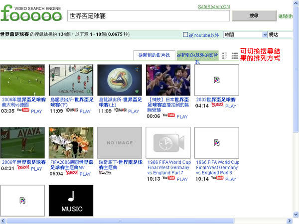 首頁線上工具網路應用 fooooo 可同時搜尋YouTube、Yam、Xuite、Yahoo等網路影片搜尋引擎 現在想找網路影片,可能都是去YouTube、Yam、Xuite、Yahoo...等,來進行搜尋,可是網站這麼多,找影片時該如何一網打盡呢?來試試 fooooo 該網站的影片搜尋引擎,支援現在主流的網路影音網站同步搜尋,找影片也可以變得很輕鬆。 🔔 不錯過任何精彩! 立即訂閱我們的 LINE 官方帳號 每次發佈新文章時,您將會第一時間收到本站文章連結通知,輕鬆掌握最新資訊! 使用 LINE 追蹤文章更新 §相關文章,還可以參閱:VPNLY 完全免費 VPN 工具,四國 20+ 伺服器免註冊無限流量Flying TTFB:免費網站測速工具!22個全球節點幫你找出網站慢在哪Google URL Shortener (goo.gl) 正式告別, 10個優質短網址替代方案推薦Zero Width Shortener (ZWS):隱形短網址的免費縮網址線上工具LibreSpeed SpeedtestCustom:免費網路速度測試工具,提供遠傳、台灣大哥大、中華、亞太等測試主機 如何使用 fooooo 搜尋引擎來搜尋影片? 1.進入 fooooo 網站,其實大概一看就懂了,左邊是影片分類,中間上方是可輸入關鍵字搜尋,下方則是搜尋的影片列表。 2.輸入關鍵字搜尋,得到的搜尋結果,在影片的分鐘數後會列出該影片是從哪個影音網站搜尋到的。 3.若要觀看該影片,點擊影片名稱,便可播放。 fooooo網站網址:http://tw.fooooo.com/