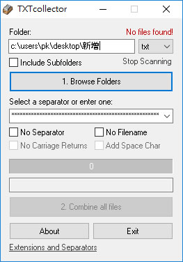 首頁電腦軟體檔案管理 TXTcollector 文字檔合併免費工具 Windows 內建記事本的功能,具有簡單、啟動快速、占用系統資源小且可流通率高等優點,對臨時記事或草稿都是不錯的選擇,對長期使用記事本所產生的文字檔,如果有合併整理的需要,多數人的做法就是一個個開啟後複製再貼到統一的一個檔案內,相當麻煩,這時候,可以來試試 TXTcollector 這個檢當的免費工具,只要將需要合併的文字檔通通放到一個資料夾內,就可以將其內容進行整合成一個文字檔,且檔案之間的內容也可以有分隔線,讓閱讀者可以分辨。 🔔 不錯過任何精彩! 立即訂閱我們的 LINE 官方帳號 每次發佈新文章時,您將會第一時間收到本站文章連結通知,輕鬆掌握最新資訊! 使用 LINE 追蹤文章更新 §相關文章,還可以參閱:檔案好多重複怎麼辦?免費 dupeGuru 幫你一鍵清出電腦空間[ 免費使用 ]PDFgear 整合各種 PDF 工具,具格式轉換、編輯、合併或拆分等功能7-Zip 檔案壓縮與解壓縮免費軟體AmoK Exif Sorter 讓照片按拍照日期重新命名並自動分類的免費軟體PDF Unshare 限制 PDF 檔案的讀取有效日期 如何使用 TXTcollector 來合併文字檔案? 1.完成安裝後,開啟 TXTcollector ,點擊[ Browse Folders ]來選擇文字檔所在的資料夾,如果資料夾內尚有其他自資料夾需合併,可以勾選[ Include Subfolders ]。 2.接下來選擇檔案與檔案之間內容的分隔符號,如果不需要,也可以將 No Separator 勾選。 3.點擊[ 2 Combine all files ]就會進行合併。 TXTcollector版本:2.0.2語言:英文性質:免費適用:Windows官方網站:https://bluefive.pairsite.com/txtcollector.htm下載:按我下載 TXTcollector