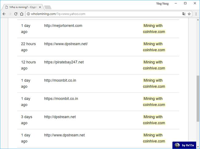 首頁線上工具資訊安全 Who is mining 檢查網站是否會加載加密貨幣挖掘程式 Bitcoin、Ethereum、AltCoins 等均屬於加密貨幣的一種,其中以比特幣最具知名度且身價最高,美國商品期貨交易委員會甚至放行比特幣期貨交易,因此,在各方的推波助瀾下,挖礦風再起,但要挖礦,需要具備大量且較高規格的電腦設備,於是乎有些網站將腦袋動到訪問他們網站的用戶,告知造訪者是否願意讓其系統資源來加入挖掘貨幣的行列,當然,並不是所有的網站都會徵求造訪者的同意的,因此,當用戶發現電腦速度變慢、CPU 資源為特定程式所佔用或溫度異常升高,有可能電腦資源被挖礦程式所佔用,可以先來 Who is mining 這裡檢查所懷疑的網站。 🔔 不錯過任何精彩! 立即訂閱我們的 LINE 官方帳號 每次發佈新文章時,您將會第一時間收到本站文章連結通知,輕鬆掌握最新資訊! 使用 LINE 追蹤文章更新 §相關文章,還可以參閱:終結網路霸凌!Google 搜尋新工具幫你永久移除私密影像注意!Let's Encrypt 憑證期限從 90 天減半至 45 天,因應方法看這裡朱雀大模型檢測:騰訊推出的 AI 內容鑑別工具,精準識別 AI 生成文章與圖片如何透過「Google One」檢查 Gmail 是否因資料侵害事件外洩到暗網上?Batch PDF Encryptor 替 PDF 檔案加入擁有者與開啟密碼保全措施 免費可批量 如何使用 Who is mining? 1.使用瀏覽器進入 Who is mining 網站,輸入要檢測的網址後,按[ Check ],檢測結果會在輸入框下方出現。 2.可以看看稍早之前網址的檢測結果。 Who is mining網站網址:http://whoismining.com/