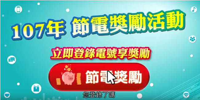 首頁線上工具生活資訊 要享有節電獎勵?快去台電登錄資料 看電費帳單的時候,如果本期比去年同期的用電量還少就會獲得節電獎勵,並自動回饋到本期電費,因此帳單上看到的應繳金額就是扣除獎勵後的金額,以往這項功能免申請只要符合資格的用電戶就能自動享有,但自 107年起規定必須先登錄電號等資料,才會有享有節電獎勵回饋,107年 4月 30日(含)前報名登錄成功者,107年全年各期電費之節電量均可獲得獎勵金;107年 5月 1日至 107年 12月 17日報名登錄成功者,自登錄日起 107年各期電費之節電量可獲得獎勵金,符合資格的用電戶為住宅用戶(含住宅公共設施用戶)及國中小學之用電戶,可以利用台電專屬網站、客服專線 1911,或是親自到台電櫃台辦理,不要忘記,要享有 107年全年各期電費之節電獎勵金,需要在 107年 4月 30日(含)前報名登錄成功。 🔔 不錯過任何精彩! 立即訂閱我們的 LINE 官方帳號 每次發佈新文章時,您將會第一時間收到本站文章連結通知,輕鬆掌握最新資訊! 使用 LINE 追蹤文章更新 §相關文章,還可以參閱:459 萬人搶 60 萬份!運動幣中獎號碼公布,快查你的身分證尾數都馬一起GO!LINE GO新年優惠最高拿$800優惠券,還有一個月乘車金等你抽過年搭高鐵自由座要排多久?看LINE就知道 台灣高鐵×LINE TODAY推出春節限定燈號預估服務2026春節看診不煩惱!健保快易通一鍵查詢過年門診資訊2月 Disney+ 不容錯過!韓劇《在你燦爛的季節》、Pixar 原創動畫、漫威英雄一次滿足 如何利用台電網站登錄資料? 1.要利用台電網站登錄用電戶資料,請先準備電號,在帳單或繳費憑證上都有。 2.接下來進入台電 網站,裡面有詳細的遊戲規則說明,尤其是紅色標記的文字,很重要,接下來,按[ 繼續 ]。 3.接下來輸入電號後,按[ 繼續 ]。 4.輸入並同意個資法規定與確認基本資料後,便可看到登錄成功頁面。 台灣電力公司網站網址:https://tpcuip.taipower.com.tw/savepower/