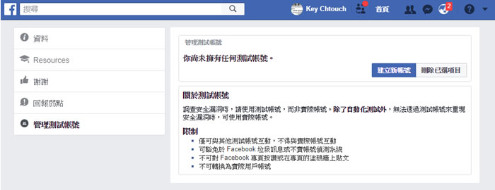 首頁線上工具資訊安全 如何在沒有電子郵件或電話號碼的情況下建立 Facebook 測試帳號? 對於想在 Facebook 上測試一些東西,但又不想使用現在實際與朋友的互動帳號,Facebook 提供了一個簡單的解決方案,這個方案就是在現有帳號下建立「測試帳號」,無須額外的電子郵件信箱或電話號碼就能建立。 🔔 不錯過任何精彩! 立即訂閱我們的 LINE 官方帳號 每次發佈新文章時,您將會第一時間收到本站文章連結通知,輕鬆掌握最新資訊! 使用 LINE 追蹤文章更新 §相關文章,還可以參閱:終結網路霸凌!Google 搜尋新工具幫你永久移除私密影像注意!Let's Encrypt 憑證期限從 90 天減半至 45 天,因應方法看這裡朱雀大模型檢測:騰訊推出的 AI 內容鑑別工具,精準識別 AI 生成文章與圖片如何透過「Google One」檢查 Gmail 是否因資料侵害事件外洩到暗網上?Batch PDF Encryptor 替 PDF 檔案加入擁有者與開啟密碼保全措施 免費可批量 「測試帳號」的限制: 僅可與其他測試帳號互動,不得與實際帳號互動 可豁免於 Facebook 垃圾訊息或不實帳號偵測系統 不可對 Facebook 專頁按讚或在專頁的塗鴉牆上貼文 不可轉換為實際用戶帳號 如何在沒有電子郵件或電話號碼的情況下建立 Facebook 測試帳號? 1.在瀏覽器已經登入 Facebook 帳號的情況下,進入 https://www.facebook.com/whitehat/accounts/ 頁面,建議你先閱讀測試帳號的限制,接下來按[ 建立新帳號 ]即可。 2.所建立的測試帳號其所有註冊相關資訊均由 Facebook 自動產生。 3.登入該測試帳號後,所有的操作與實際帳號並無差異。 Facebook 測試帳號建立網站網址:https://www.facebook.com/whitehat/accounts/