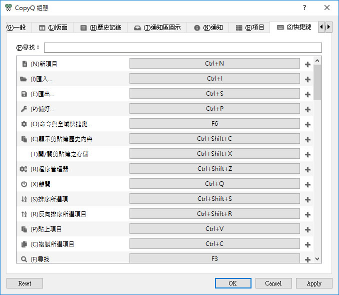 首頁電腦軟體生產力工具 CopyQ 免費剪貼簿管理工具 平常我使用[ Ctrl + C ]的快速鍵,可以複製文字、檔案,然後利用[ Ctrl + V ]來貼上,這個貼上都是最近一次的複製,如果需要重複交替的貼上前二次的複製,那就必須重複的複製與貼上,看似理所當然用法,但其實剪貼簿是可以做管理的,CopyQ 是剪貼簿的管理應用,他可以將複製的內容儲存下來,如果需要貼上的內容是已經有複製過的,那麼就可以減少複製的動作,直接選擇要的內容即可,以提高生產率。CopyQ 可以做到剪貼簿內容的搜尋、刪除、修改及匯出成文字檔,並可以根據用戶的喜好,自定其介面外觀,而且支援 Windows、Linux、OS x 等作業系統。 🔔 不錯過任何精彩! 立即訂閱我們的 LINE 官方帳號 每次發佈新文章時,您將會第一時間收到本站文章連結通知,輕鬆掌握最新資訊! 使用 LINE 追蹤文章更新 §相關文章,還可以參閱:AingDesk:一鍵安裝 Ollama AI 模型管理器,讓 LLaMA、DeepSeek 在本機電腦上運行Arc 瀏覽器正式登陸 Windows 11,開啟全新瀏覽體驗!Norton Secure Browser 使用 Chromium 核心的瀏覽器,有廣告封鎖和隱私保護功能BingGPT 桌面應用程式,讓你不用 Edge 也能用 Bing 聊天機器人SlippyClerk 數字、英文字母有序字串產生器 可自訂前後綴字詞 如何使用 CopyQ? 1.解壓縮所下載的檔案,執行「CopyQ.exe」便可開啟,開啟後,會在工作列的隱藏圖示中看到 CopyQ 的圖示,可以使用滑鼠右鍵點擊,便可叫出功能表。 2.[ (S)顯示/隱藏 ]可以查看現行剪貼簿的內容,右側的工具列,可以協助我們對剪貼簿的內容進行編輯、刪除或加入備註等,其中筆型的圖示按鈕,可以直接將文字複製到記事本中進行後續的編輯。 3.在[ 偏好 ]功能,可以讓我們依照自己的習慣,打造屬於自己習慣使用的 CopyQ。 4.利用所提供的快速鍵,可以加快工作的速度,提供生產力。 CopyQ版本:7.0.0語言:中文性質:免費適用:Windows | Linux | MacOS官方網站:https://sourceforge.net/projects/copyq/下載:按我前往官方網站下載