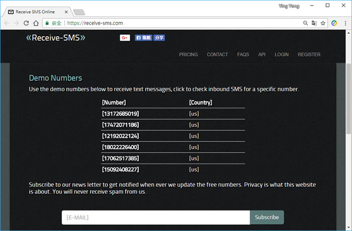 首頁線上工具郵件簡訊 需要免費的電話號碼接收簡訊?那就來 Receive SMS Online 網站吧 現在在網站註冊大都需要用手機獲取驗證碼,無論是什麼理由,就是不想拿自己的手機出去註冊,可以來試試 Receive SMS Online 這個免費的網站服務,該服務每次會提供 6個美國的電話號碼免費讓大家使用,所收到的驗證碼也會立即在網頁上公布,雖說沒有隱私,但驗證碼通常都有時效性與獨立性,不會為他人所用,反而該注意的是註冊網站會不會因為電話號碼重複,而不給註冊。 🔔 不錯過任何精彩! 立即訂閱我們的 LINE 官方帳號 每次發佈新文章時,您將會第一時間收到本站文章連結通知,輕鬆掌握最新資訊! 使用 LINE 追蹤文章更新 §相關文章,還可以參閱:MinMail Temp Mail 免費的臨時電子郵件信箱服務,24小時內有效TempMail100:快速取得可接收電子郵件的臨時信箱,輕鬆防止垃圾郵件臨時電子郵箱 Email.ML:有效期一小時,無廣告支援中文郵件22.Do:可用 gmail.com 當後綴地址的免費臨時電子郵件信箱,24小時有效期AdGuard Temp Mail:保護隱私、區分用途的免費臨時電子郵件服務 如何使用 Receive SMS Online 接收簡訊? 1.使用瀏覽器進入 Receive SMS Online 網站,便可以看到所公布的 6個電話號碼,號碼後面是該電話號碼所屬國家,如果想要在第一時間得知網站更新電話號碼的訊息,也可以將電子郵件信箱輸入。 2.所接到的簡訊會在網頁的下方立即公布,搞錯的機率應該不高。 Receive SMS Online網站網址:https://receive-sms.com/