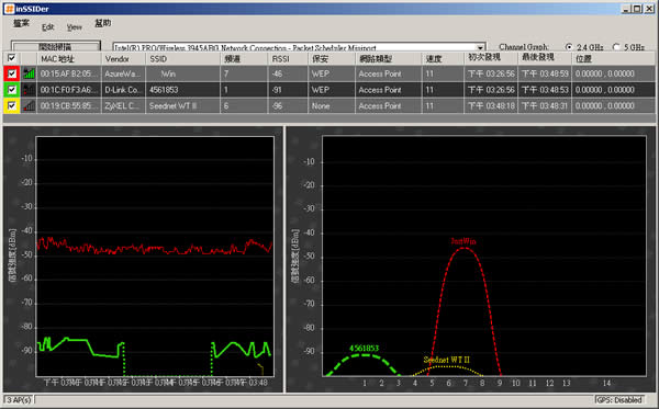 首頁電腦軟體網路應用 inSSIDer 掃描電腦周邊的無線網路訊號 要掃描電腦周邊的無線網路訊號,通常都是使用電腦內建的無線網卡管理工具來進行,但是有一點不方便的就是他無法一直持續的搜尋訊號,必須不斷地「重新整理網路清單」,才能得到即時的周邊網路清單,inSSIDer 是一套可以持續掃描電腦周邊無線網路訊號的免費軟體,除了提供原本 Windows 內建無線網卡管理工具的資訊外,inSSIDer 提供得更為詳盡的資訊,包括訊號強度、SSID、Channel、MAC 地址...等。 🔔 不錯過任何精彩! 立即訂閱我們的 LINE 官方帳號 每次發佈新文章時,您將會第一時間收到本站文章連結通知,輕鬆掌握最新資訊! 使用 LINE 追蹤文章更新 §相關文章,還可以參閱:Bright VPN 提供覆蓋全球60多個位置的免費 VPN服務WhoisThisDomain 網域名稱註冊資料免費查詢工具PingInfoView 可自訂時間 PING 自訂的 IP 或網域並發出通知Wireless Network Watcher 找出有哪些裝置正在連你的無線網路IPNetInfo IP 資訊查詢工具 如何使用 inSSIDer? 1.下載安裝後,可從[開始] > [程式集]來開啟 inSSIDer 主程式,開啟後點擊[開始掃描],便會得到該電腦周邊無線訊號的詳細資料。 2.若需要改變搜尋網路的頻率,可點擊[檔案] > [選項],並在後續出現的視窗中進行設定。 inSSIDer版本:2.1.1.13語言:英文性質:免費適用:Windows官方網站:https://www.metageek.com/下載:按我下載