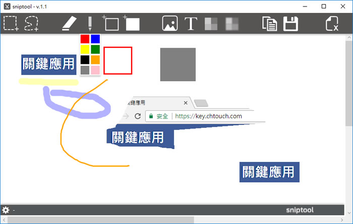 首頁電腦軟體影像繪圖 sniptool 剪貼不規則的圖案並可加入文字、線條、馬賽克與模糊化的免費工具 想要剪貼螢幕上的圖案,多數人想到的就是利用[ Alt + Print Screen ]快速鍵來擷取當前視窗,或是利用[ Print Screen ]來擷取整個螢幕畫面,如果要不規則的擷取,也可以使用 Windows 內建的剪取工具 來操作,sniptool 同樣是套可對螢幕進行解取的免費又免安裝軟體,所解取的圖片,會立即放到編輯視窗中,讓你做後續像是加入文字、線條、標籤、馬賽克、模糊等的應用,如果覺得 Windows 內建的剪取工具 不是太好用的話,可以來試試 sniptool。 🔔 不錯過任何精彩! 立即訂閱我們的 LINE 官方帳號 每次發佈新文章時,您將會第一時間收到本站文章連結通知,輕鬆掌握最新資訊! 使用 LINE 追蹤文章更新 §相關文章,還可以參閱:告別訂閱制!Canva 旗下 Affinity 永久免費,向量設計、影像處理、排版工具全面開放Pineapple Pictures 載入速度超快的相片檢視器(免安裝)PhotoResizerOK 可快速調整圖片尺寸的免費軟體ShortDoorNote 將輸入的文字快速轉成圖片Bzzt! Image Editor 圖片批次壓縮、轉檔及尺寸調整的免費工具 如何使用 sniptool ? 1.解壓縮所下載的檔案,執行「sniptool.exe」便可開啟,無須安裝。 2.開啟後,透過解壓縮的資料夾內的圖片說明,可知每個按鈕的功能。 3.剪取圖片的工具在上方圖示功能表的最左側,有兩個,分別可應用在規則與不規則的圖案剪取。 4.提供的繪圖工具有四項,並有顏色可選,要移除所繪進去的圖案,可使用滑鼠右鍵來操作。 5.加入文字、馬賽克及模糊工具。 6.完成的圖片,可以按磁碟片的圖示按鈕來儲存;左下角的齒輪圖示按鈕,可讓我們繪圖工具的參數值。 sniptool版本:2.0語言:英文性質:免費適用:Windows官方網站:https://www.reasyze.com/sniptool/下載:按我下載