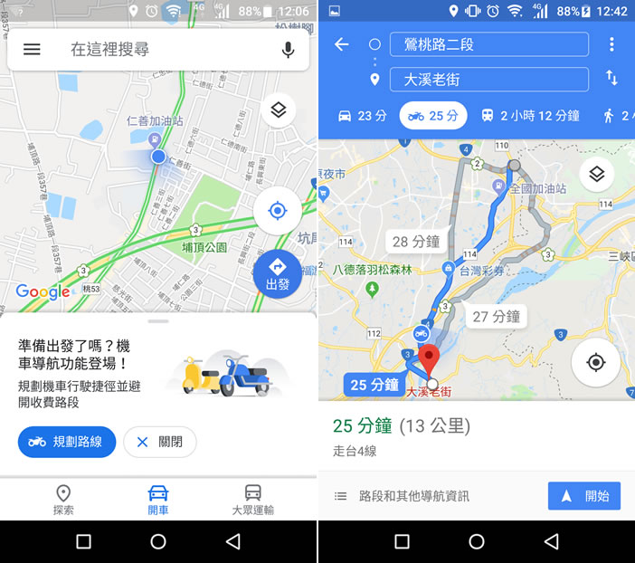 首頁線上工具生活資訊 廣大的機車族們,Google 地圖「機車導航」已上線 騎機車用導航,最怕的一件事情就是會被引導去上國道,現在這個問題 Google 來幫你解決,Google 在 5 月時舉辦的 I/O 開發者大會上提及的 Google 地圖新功能「機車導航」,現在已經正式上線,只要將裝在手機內的「 Google 地圖」 APP 更新到最新版就能使用此功能,開啟後,在「搜尋路線」上就會新增一個機車標誌,為騎士提供最適合機車行駛的路線,不過有「待轉」的路口,還是需靠騎士自己注意,語音只有提醒左轉,並無提醒要「待轉」。 🔔 不錯過任何精彩! 立即訂閱我們的 LINE 官方帳號 每次發佈新文章時,您將會第一時間收到本站文章連結通知,輕鬆掌握最新資訊! 使用 LINE 追蹤文章更新 §相關文章,還可以參閱:Apple Music 台灣新用戶優惠:6個月免費暢聽,領取方式與限制一次看!2026春節追劇清單!Netflix 2月必看攻略:燒腦推理、火爆動作片,陪你從初一爽追到開工!459 萬人搶 60 萬份!運動幣中獎號碼公布,快查你的身分證尾數都馬一起GO!LINE GO新年優惠最高拿$800優惠券,還有一個月乘車金等你抽過年搭高鐵自由座要排多久?看LINE就知道 台灣高鐵×LINE TODAY推出春節限定燈號預估服務 如何利用 Google 地圖「機車導航」? 1.在手機上,開啟 Google 地圖 後,便會看到機車導航新功能的提醒,接下來,輸入想去的地點後,便會規畫一條適合機車行走的路線。 2.如果用的是開車模式,就會幫你規畫走國道。 Google 地圖網站網址:https://play.google.com/store/apps/details?id=com.google.android.apps.maps