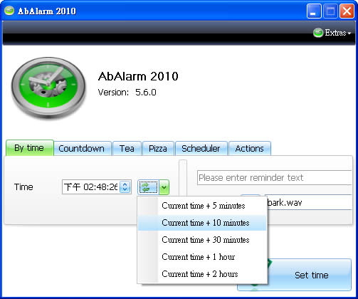 2.若要設定成鬧鐘提醒功能,使用[By time]頁籤,在Time輸入要鬧鈴的時間或點選時間快速設定。