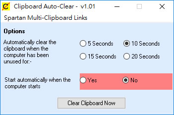 首頁電腦軟體生產力工具 Clipboard Auto-Clear 定時清空複製到剪貼板內的內容物 Windows 作業系統的複製( Ctrl + C )與貼上( Ctrl + V ) 是一個大家幾乎都會用到的功能,不會是文字或是檔案的複製,其中間都有一個暫時存放的地方,那就是剪貼版,剪貼版存放著複製後的文字或檔案,但一般用戶使用[ 貼上 ]功能時,就只會重送上一次的的複製內容物,無法貼上更早之前的複製,想要清空剪貼版內所占用的記憶體,可以來試試 Clipboard Auto-Clear 這套免費軟體,其提供每 5秒一個間隔來清除剪貼版內的內容物,釋放所占用的記憶體。 🔔 不錯過任何精彩! 立即訂閱我們的 LINE 官方帳號 每次發佈新文章時,您將會第一時間收到本站文章連結通知,輕鬆掌握最新資訊! 使用 LINE 追蹤文章更新 §相關文章,還可以參閱:AingDesk:一鍵安裝 Ollama AI 模型管理器,讓 LLaMA、DeepSeek 在本機電腦上運行Arc 瀏覽器正式登陸 Windows 11,開啟全新瀏覽體驗!Norton Secure Browser 使用 Chromium 核心的瀏覽器,有廣告封鎖和隱私保護功能BingGPT 桌面應用程式,讓你不用 Edge 也能用 Bing 聊天機器人SlippyClerk 數字、英文字母有序字串產生器 可自訂前後綴字詞 如何使用 Clipboard Auto-Clear? 1.完成安裝,開啟 Clipboard Auto-Clear,用戶可選擇其提供 5、10、15 及 20秒的時間設定,來自動清除剪貼板內的內容物,釋放所占用的記憶體,紅色框內,可設定該程式是否隨 Windows 啟動而啟用。 2.要關閉該應用程式,可點擊上圖最右上角的 X 來關閉。 Clipboard Auto-Clear版本:1.01語言:英文性質:免費適用:Windows官方網站:http://m8software.com/clipboards/clipclear/clipclear.htm下載:按我下載 Clipboard Auto-Clear